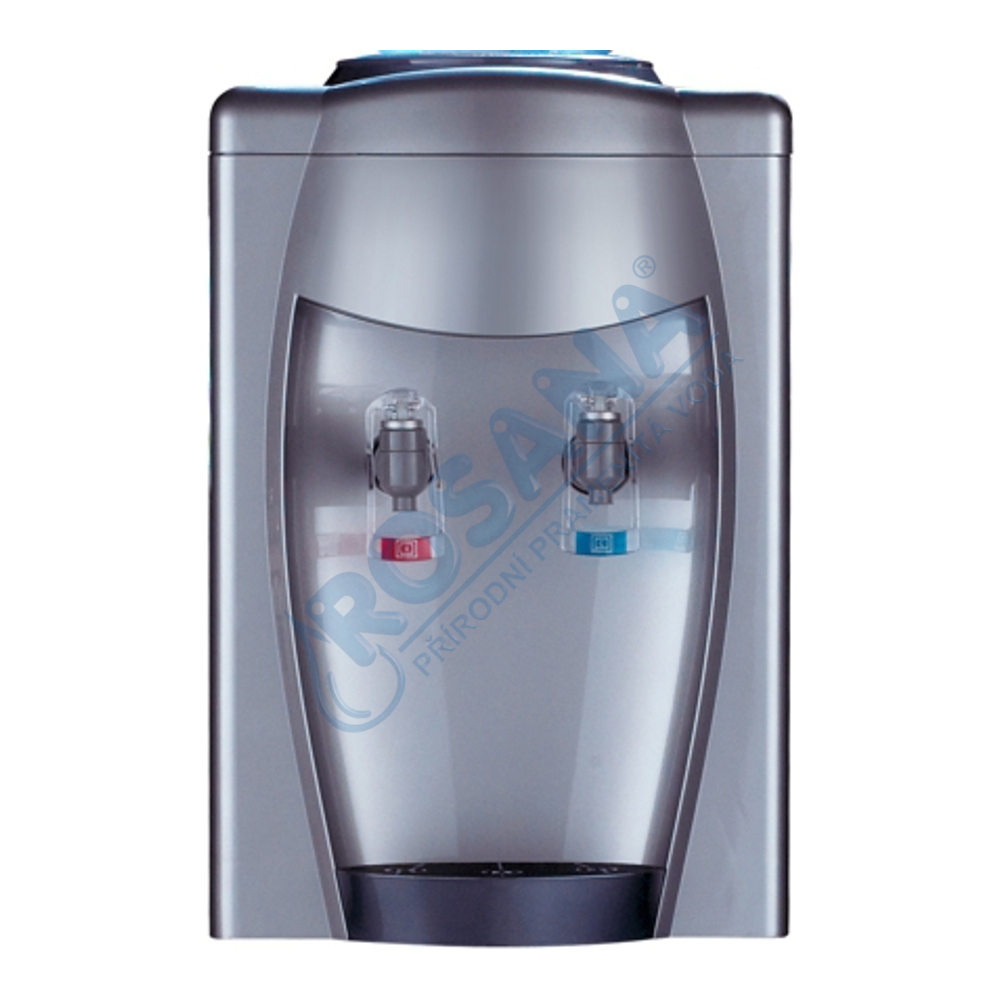 Stolní výdejník, aquamat, ve stříbrné barvě na studenou a horkou vodu určený k postavení na skříňku či stolek. Boky přístroje jsou ze stříbrného plechu a přední část ze stříbrného plastu. Na boční straně výdejníku se samostatně vypíná či zapíná ohřev a chlazení, takže je možnost při vypnutí ohřevu čerpat z červeného kohoutku vodu nechlazenou a používat aquamat k výdeji vody chlazené a nechlazené (pokojová teplota).