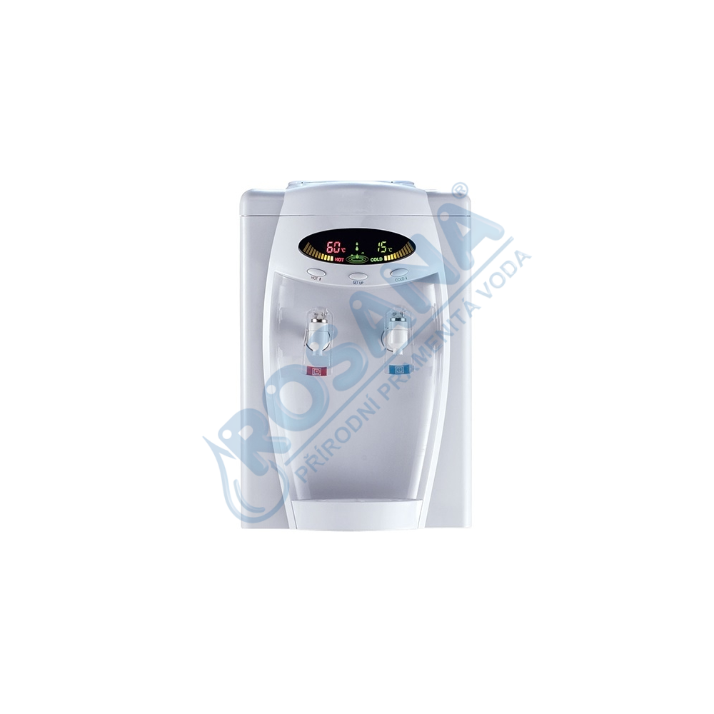 Stolní výdejník, aquamat, v bílé nebo stříbrné barvě na studenou a horkou vodu vybavený programovatelným elektronickým displejem, který ukazuje teplotu studené a horké vody. Boky přístroje jsou ze stříbrného, bílého, plechu a přední část ze stříbrného, bílého, plastu. Na digitálním displeji lze vypnout či zapnout ohřev a chlazení, takže je možnost při vypnutí ohřevu čerpat z červeného kohoutku vodu nechlazenou a používat výdejník k výdeji vody chlazené a nechlazené (pokojová teplota). U modelů od roku 2024 není vypínání teplé vody vypínačem, ale programuje se uživatelem na display. Je určený k postavení na skříňku či stolek. Uživatel má možnost si dle svého uvážení naprogramovat jak teplotu studené, tak teplotu horké vody.