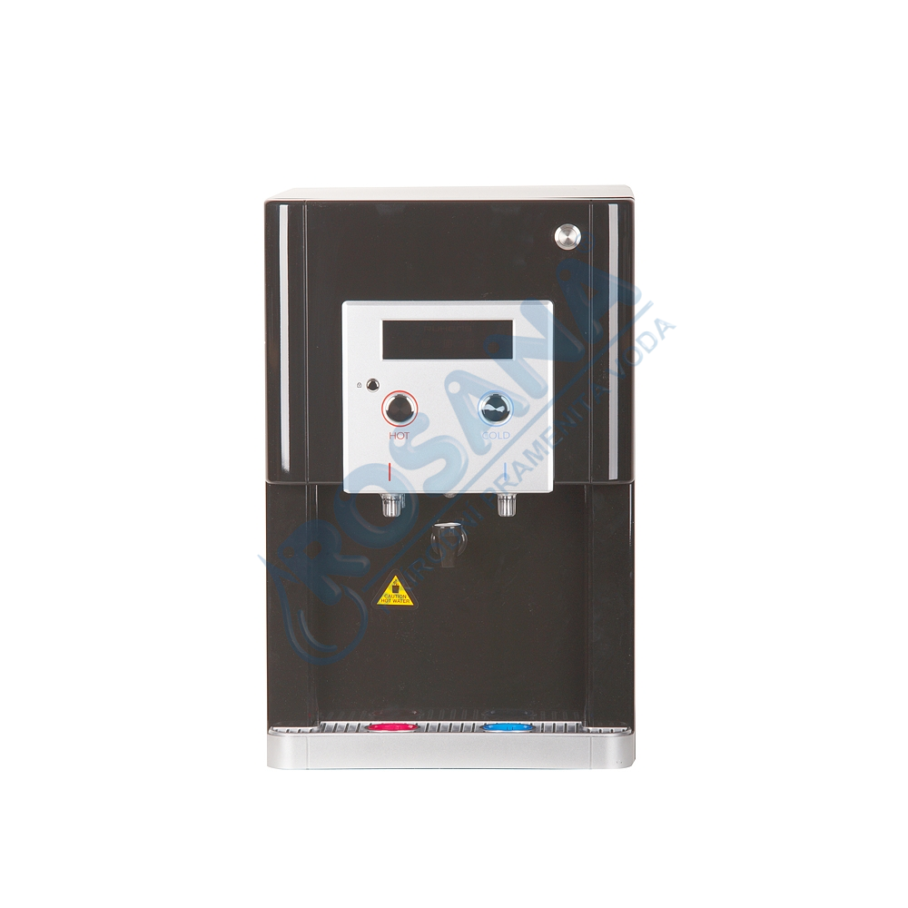 Stolní výdejník, v černé na studenou, horkou vodu a sodovou vodu. Výdejník je hranatý. Na zadní straně výdejníku se samostatně vypíná či zapíná ohřev a chlazení, takže je možnost při vypnutí ohřevu čerpat z červeného kohoutku vodu nechlazenou a používat výdejník k výdeji vody chlazené a nechlazené (pokojová teplota).